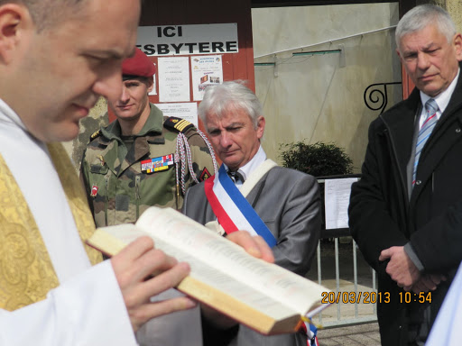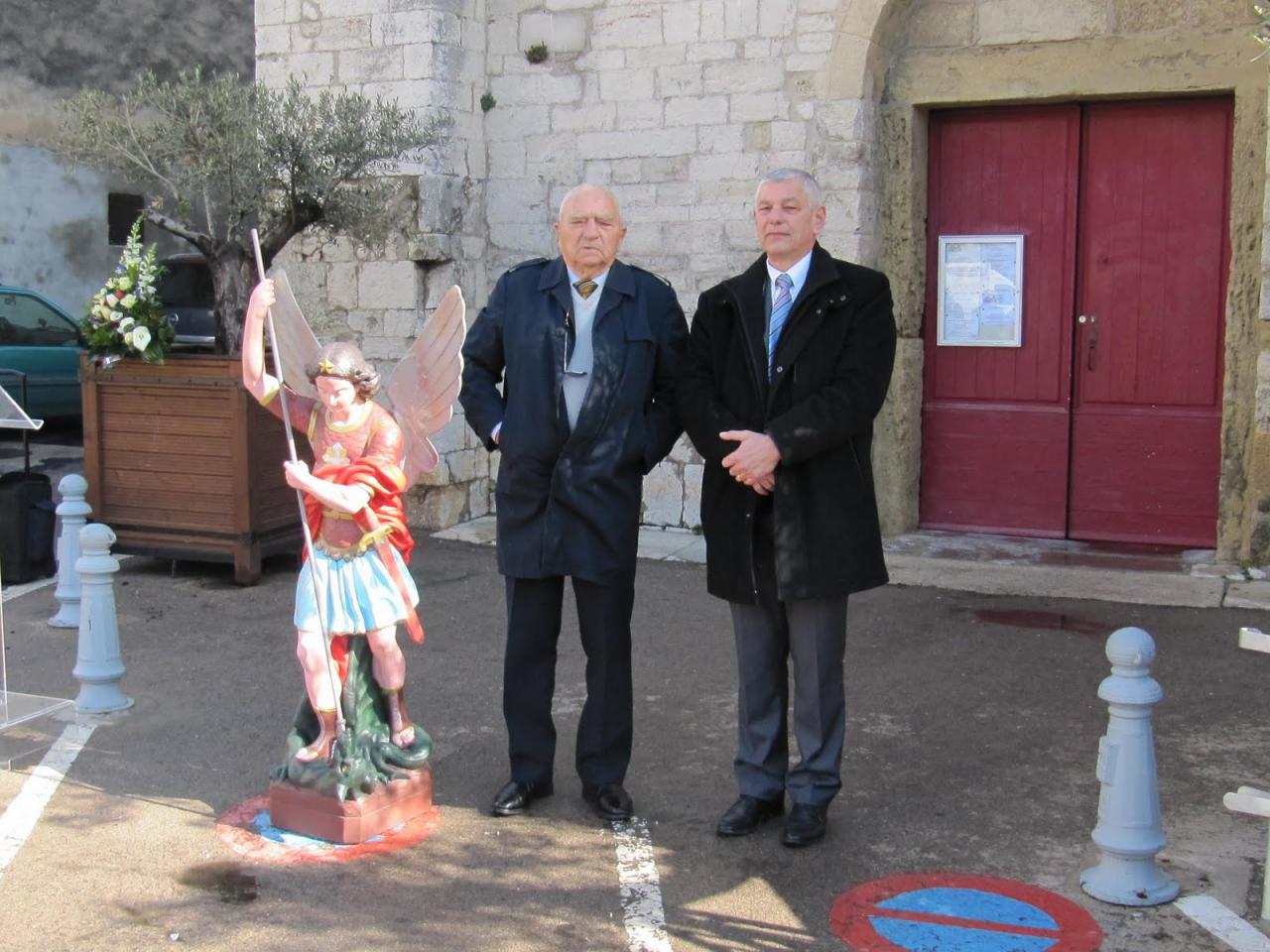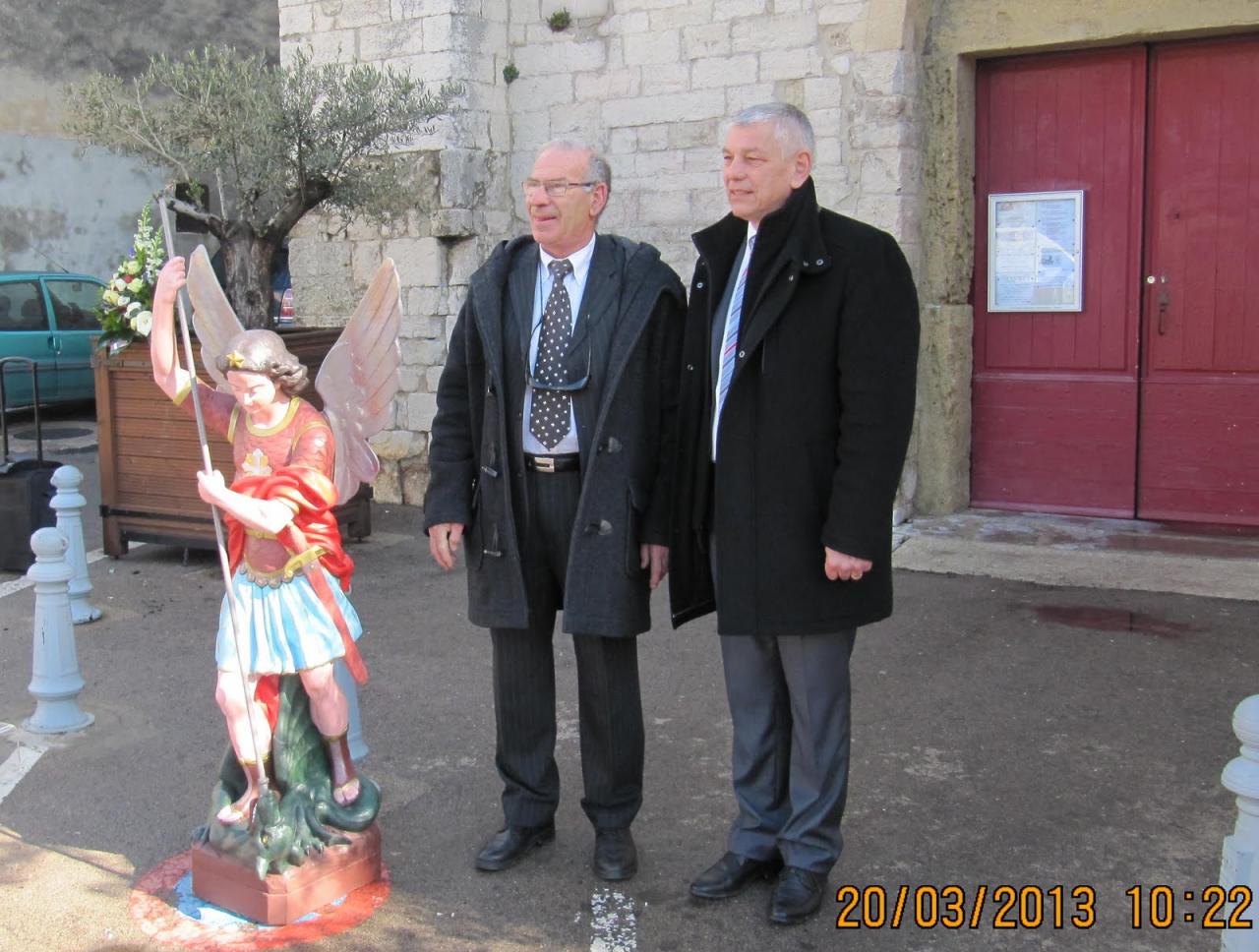En préalable à la petite cérémonie, une messe a été célébrée en l'église Saint-Étienne par les pères LAURENS du "3" et Hervé DUSSEL de la Paroisse de Villeneuve. Ce don de statue est le résultat d’une promesse personnelle tenue par Jean Paul Huberman Adjoint au Maire au Père Francis MAUZAC, peu de temps avant son décès.