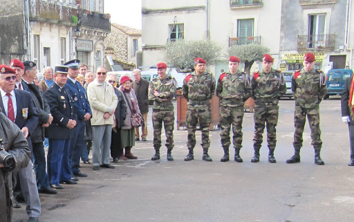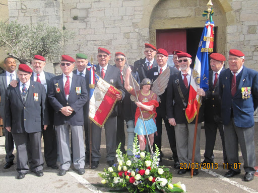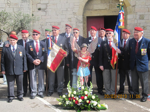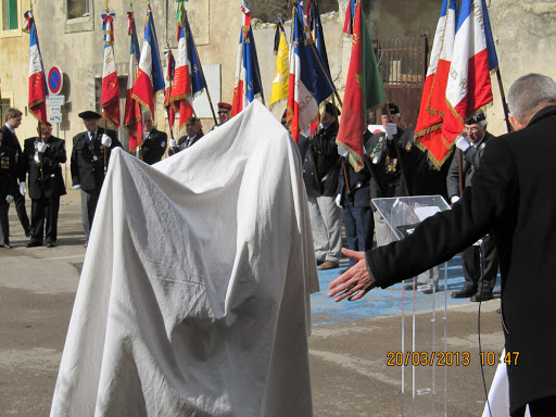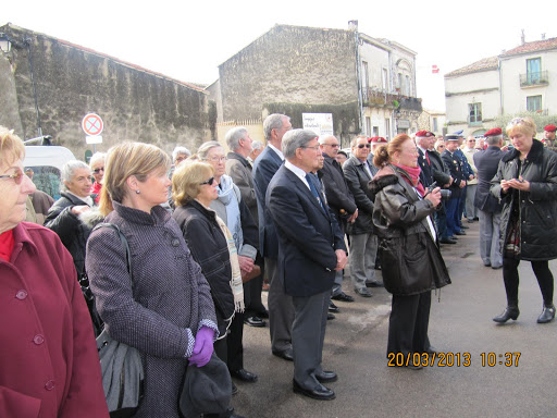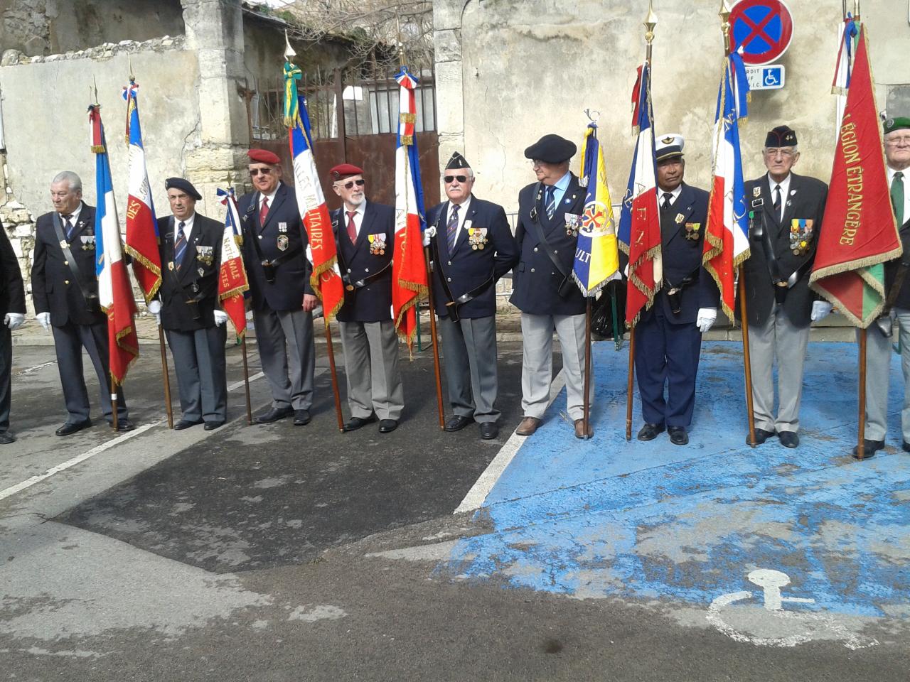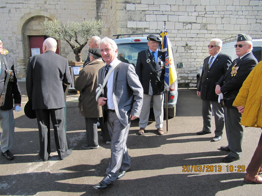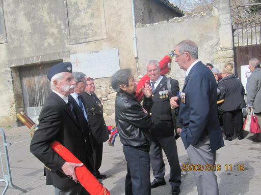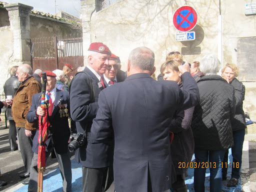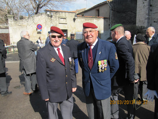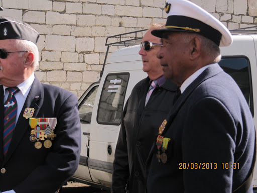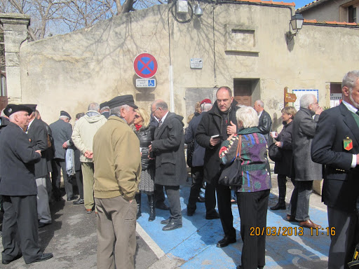Autour d'eux, d’importantes délégations d’anciens combattants parmi lesquelles, on remarquait la présence du Général KIEFFER représentant l’ASAF, de M. ORSINI représentant la Fédération Nationale André Maginot, de François LETESTU président de l’AALEME, de Jean LAFOND président de l’UNC de Villeneuve Les Maguelone, de Jacky L’HUILLIER vice-président l’UNP34 avec une très belle délégation de Paras, M. Christian ROFFAT de l’amicale des anciens sapeurs du Génie venue aussi avec une belle délégation, de l’association des résistants 39/45 représentée par Henri POITEVIN, de Yvan PERRET de l’amicale de la SIDI-BRAHIM 34, Gabriel DEAUMONT de l’UNC de Lattes et bien sur de Robert QUILLES de l’ALAD (Association Lattoises des Anciens de la Défense). Les marins, toujours solidaires, étaient aussi de la partie avec leurs étendards. Ainsi une vingtaine de porte-drapeaux étaient présents ce 20 mars 2013.