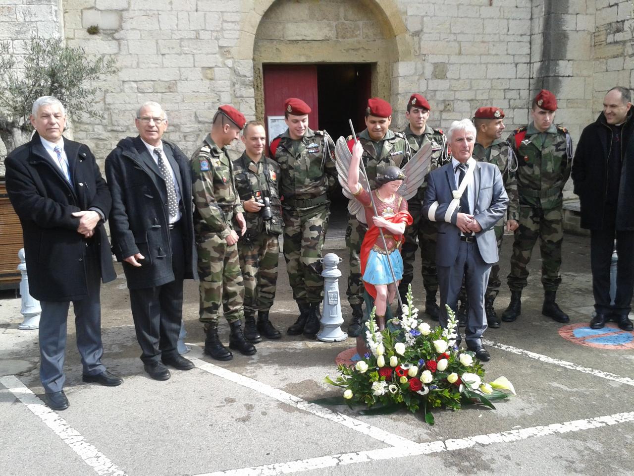 La municipalité de Villeneuve Lès Maguelone, au cours d'une cérémonie très touchante, a confié la statue de Saint Michel au 3° Régiment de Parachutistes d’Infanterie de Marine de Carcassonne.