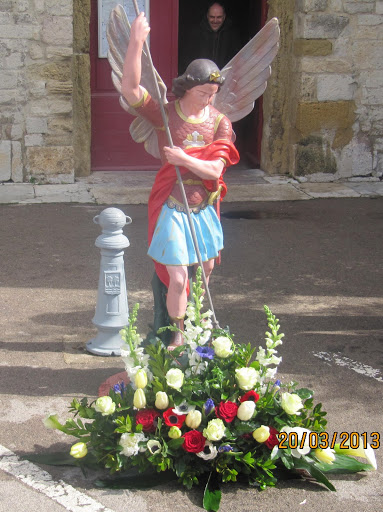 "Depuis des siècles, saint Michel a été l’objet d’une dévotion particulière. La bible le présente comme « l’archange de Dieu, porte-étendard des armées célestes » qui engagea, puis défit le Dragon, figuration de Satan. La liturgie chrétienne ajoute : « La mer s’est ébranlée et la terre a tremblé là où saint Michel est descendu du ciel ».