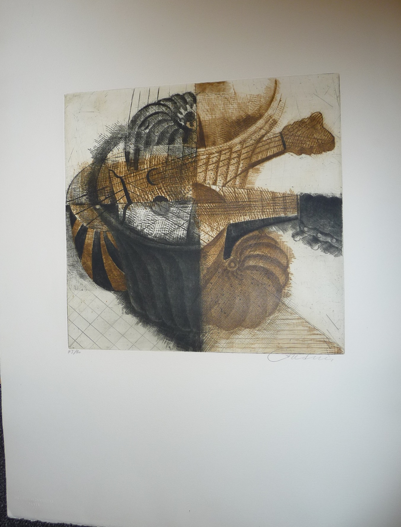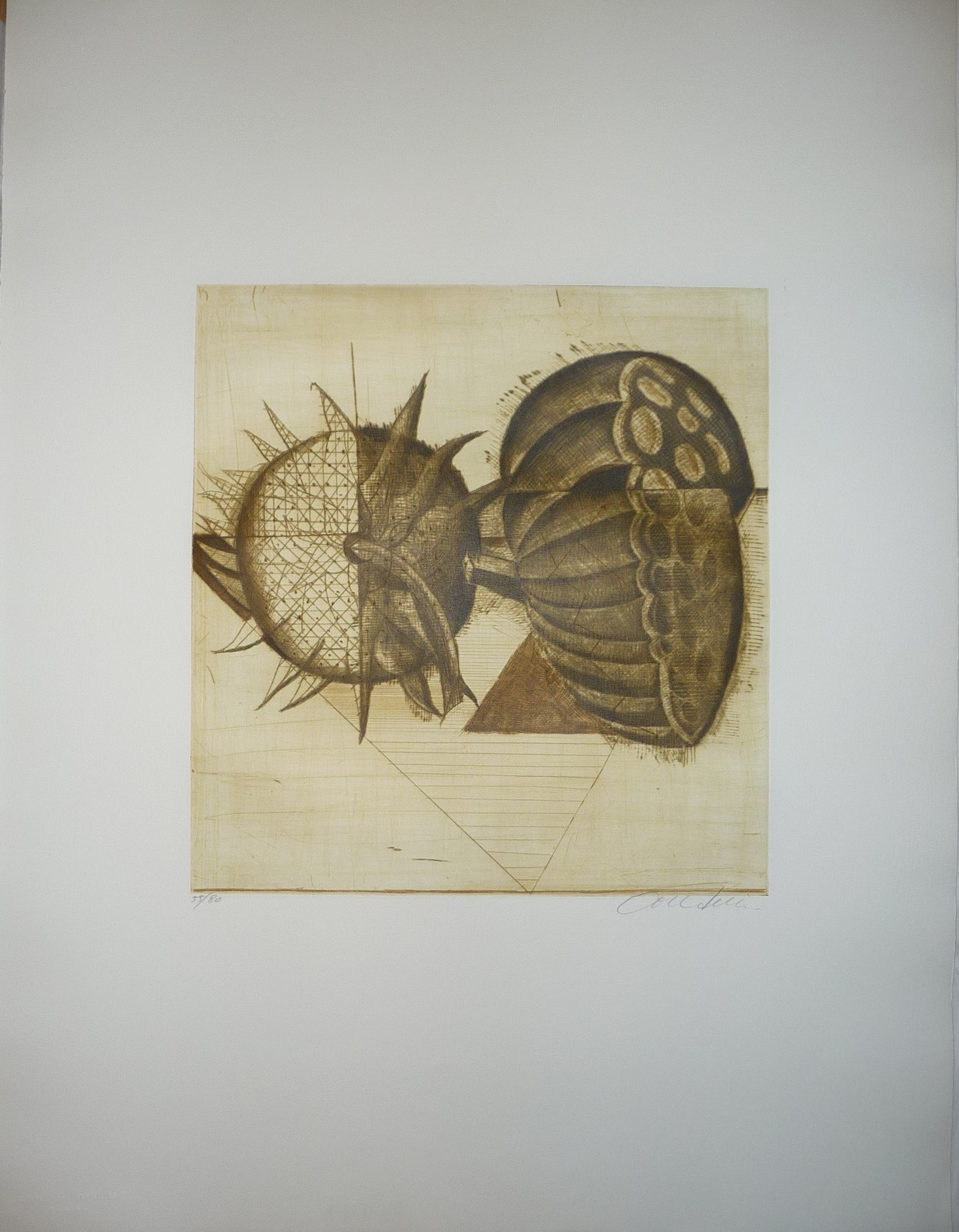 Epreuve d'artiste "Fleurs" composition fond brun noir gris- 74.5x55 cm 1980